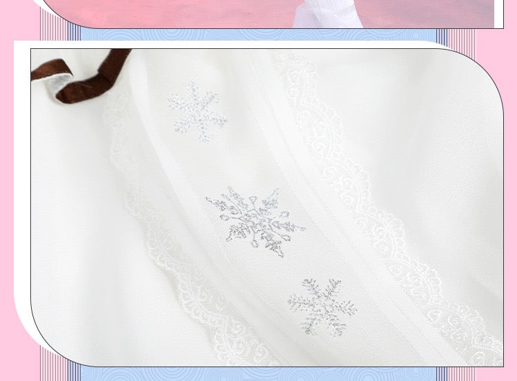 Dress*1 Belt*1 Bowknot*2 Necklace*1 Bracelet*2 Hair rope*2 Hairpin*2 Snowflake Brooch*1 Brooch*2 Sock*2 Shoulder Straps*2