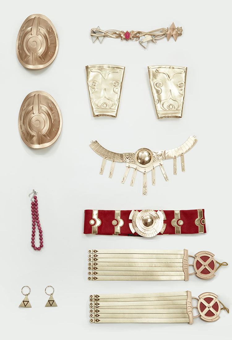 Dress*1, Vest*1, Belt*1, Underskirt*1, Cloak*1, Wristguard*2, Shoulder Armor*2, Waist Chain*2, Chest Necklace*1, Earring*2, Headpiece*1, Bead Necklace*1